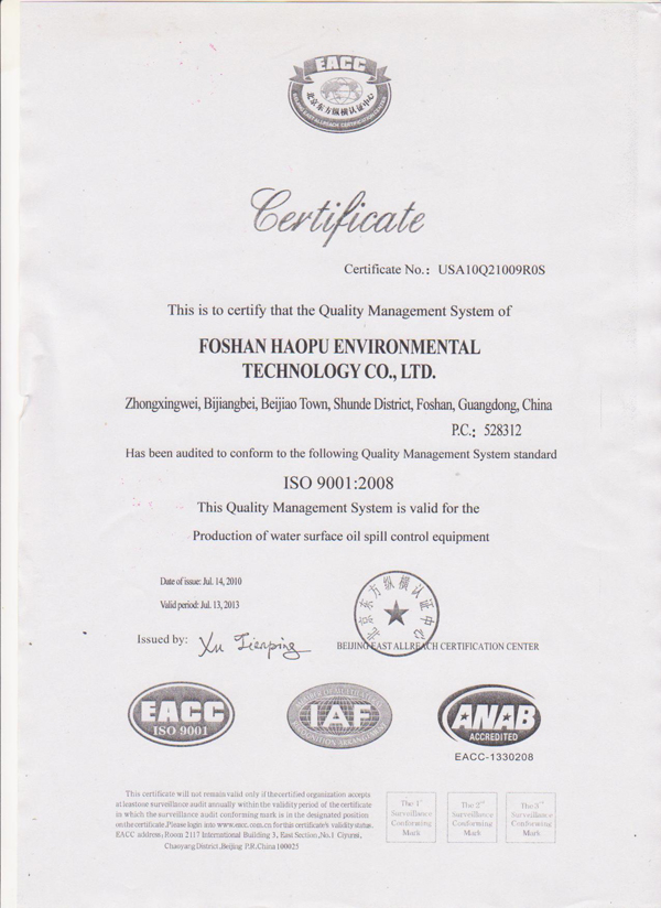 佛山市浩普环保技术有限公司专业从事水面溢油回收技术、设备的研究开发与制造。我们与国内许多大型石化公司、港口、码头、航运设计及海事部门合作。共同致力于产品的应用与推广。我们不仅给客户提供优质的产品及服务,并同客户建立长期合作关系,不断地和谐发展。